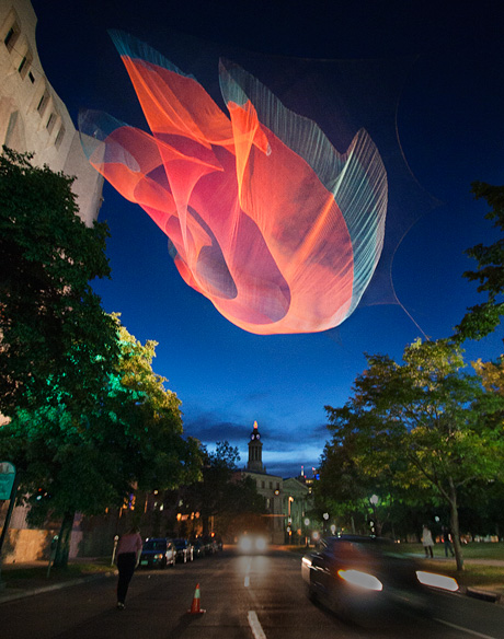 Janet Echelman builds living, breathing sculpture environments that respond to the forces of nature — wind, water and light— and become inviting focal points for civic life. Exploring the potential of unlikely materials, from fishing net to atomized water particles, Echelman combines ancient craft with cutting-edge technology to create her permanent sculpture at the scale of buildings. Experiential in nature, the result is sculpture that shifts from being an object you look at, to something you can get lost in.